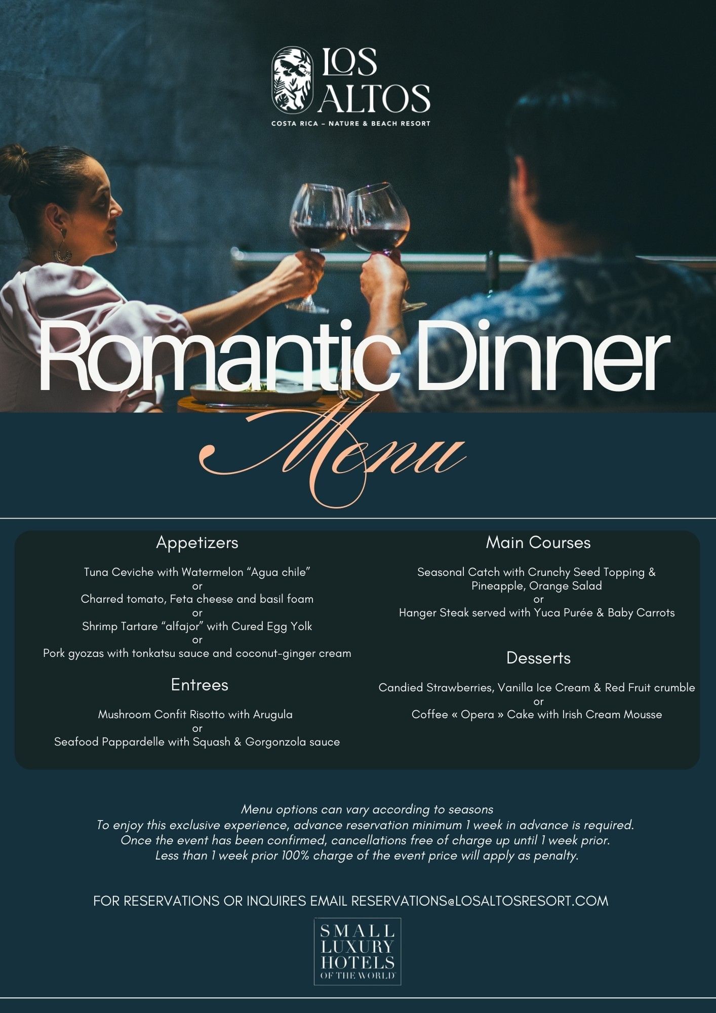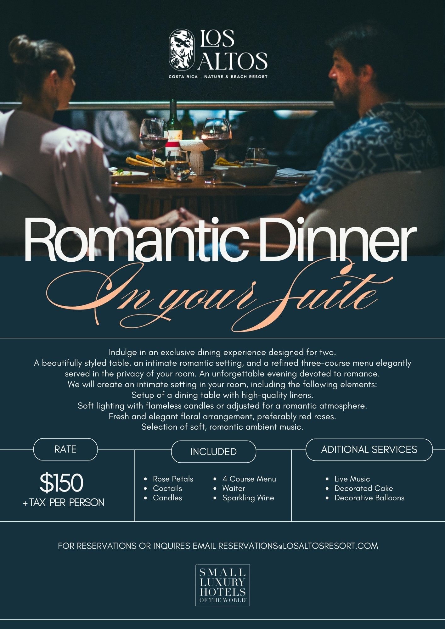 Romantic Private Dinners and Sunset Cocktails